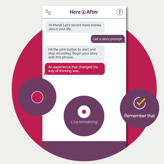 Audio record meaningful life memories with help from a friendly, virtual interviewer. Get inspiration from hundreds of story prompts or come up with ideas of your own.